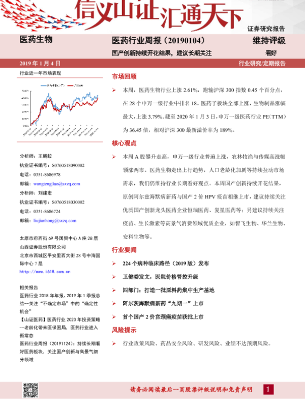 【山西证券】【20200104】医药行业周报:国产创新持续开花结果,建议长期关注-8页