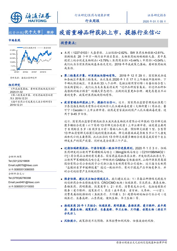 【海通证券】【20200105】医药与健康护理行业周报:疫苗重磅品种获批上市,提振行业信心-6页