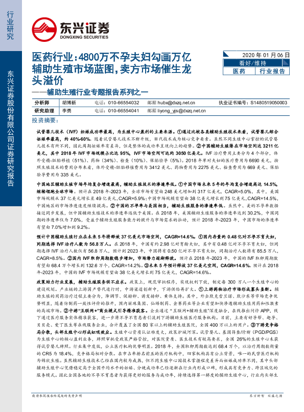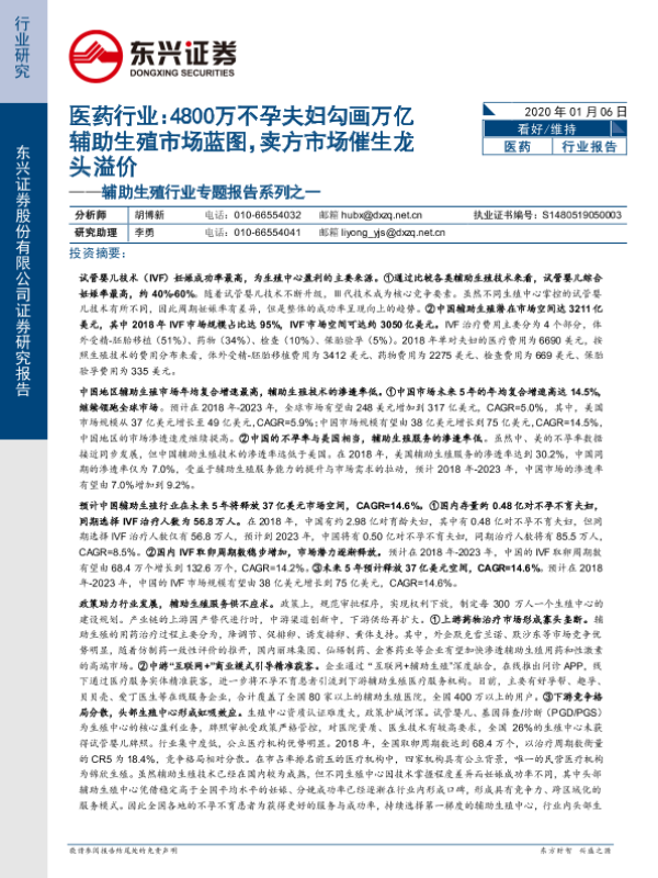 【东兴证券】【20200106】4800万不孕夫妇勾画万亿辅助生殖市场蓝图,卖方市场催生龙头溢价-31页