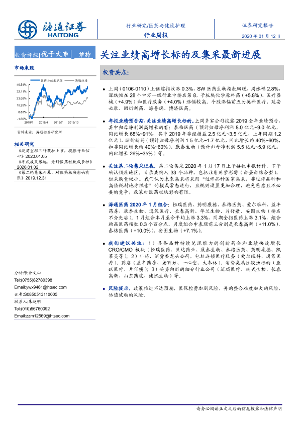 【海通证券】【20200112】医药与健康护理行业周报:关注业绩高增长标的及集采最新进展-6页