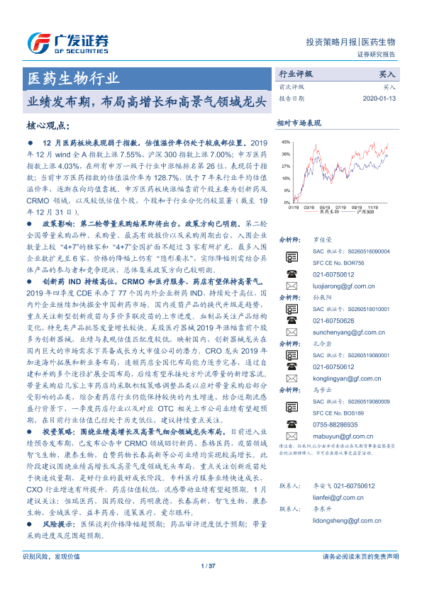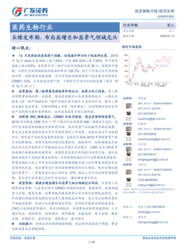 【广发证券】【20200113】医药生物行业投资策略月报:业绩发布期,布局高增长和高景气领域龙头-37页