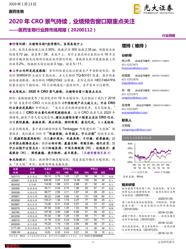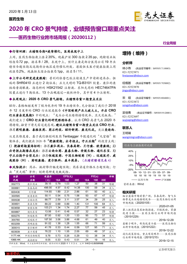 【光大证券】【20200113】2020年CRO景气持续,业绩预告窗口期重点关注-30页