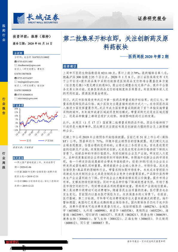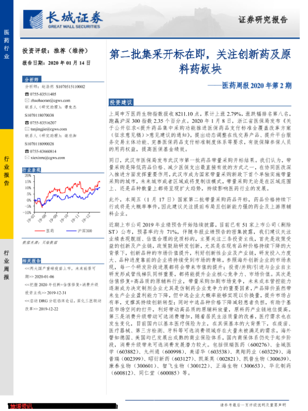 【长城证券】【20200114】医药周报2020年第2期:第二批集采开标在即,关注创新药及原料药板块-19页