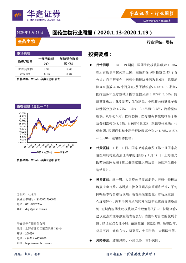 【华鑫证券】【20200121】医药生物行业周报-10页