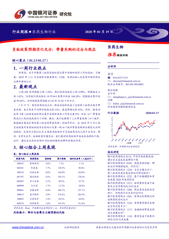 【银河证券】【20200119】医药生物行业周报:负面政策预期消化充分:带量采购的过去与现在-32页