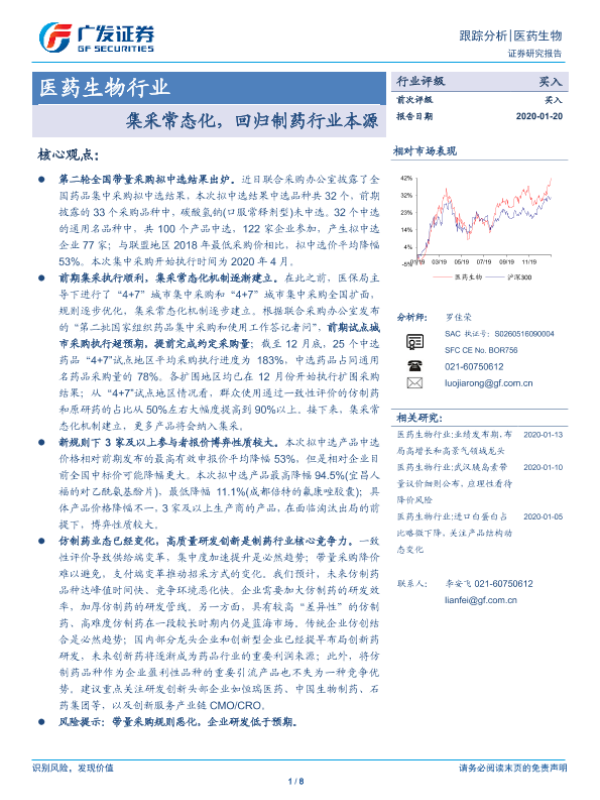 【广发证券】【20200120】医药生物行业:集采常态化,回归制药行业本源-8页