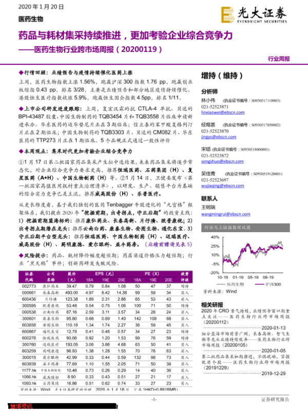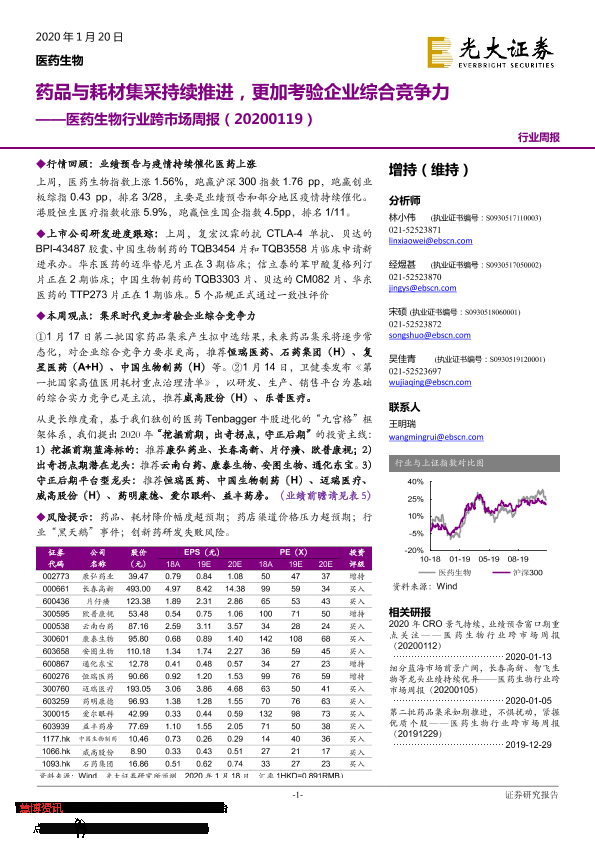 【光大证券】【20200120】医药生物行业跨市场周报:药品与耗材集采持续推进,更加考验企业综合竞争力-34页