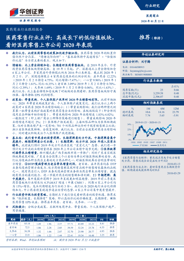 【华创证券】【20200122】医药商业行业跟踪报告:高成长下的低估值板块,看好医药零售上市公司2020年表现-4页