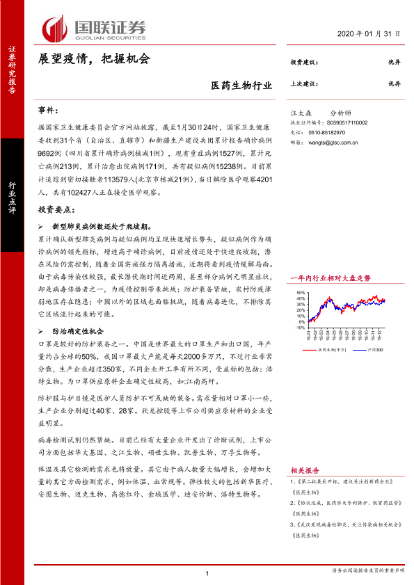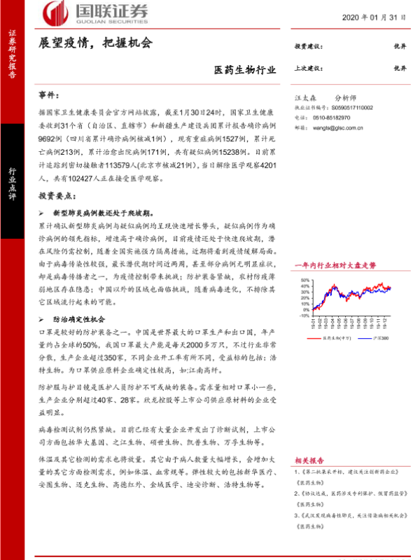 【国联证券】【20200131】医药生物行业:展望疫情,把握机会-4页
