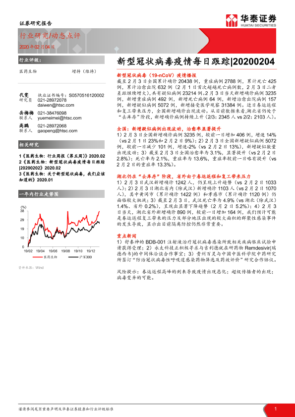 【华泰证券】【20200204】医药生物:新型冠状病毒疫情每日跟踪-4页