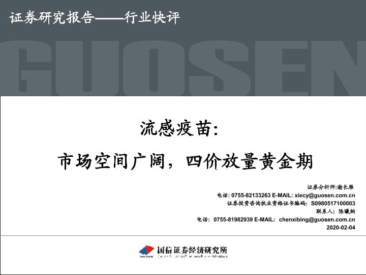 【国信证券】【20200204】流感疫苗:市场空间广阔,四价放量黄金期-46页