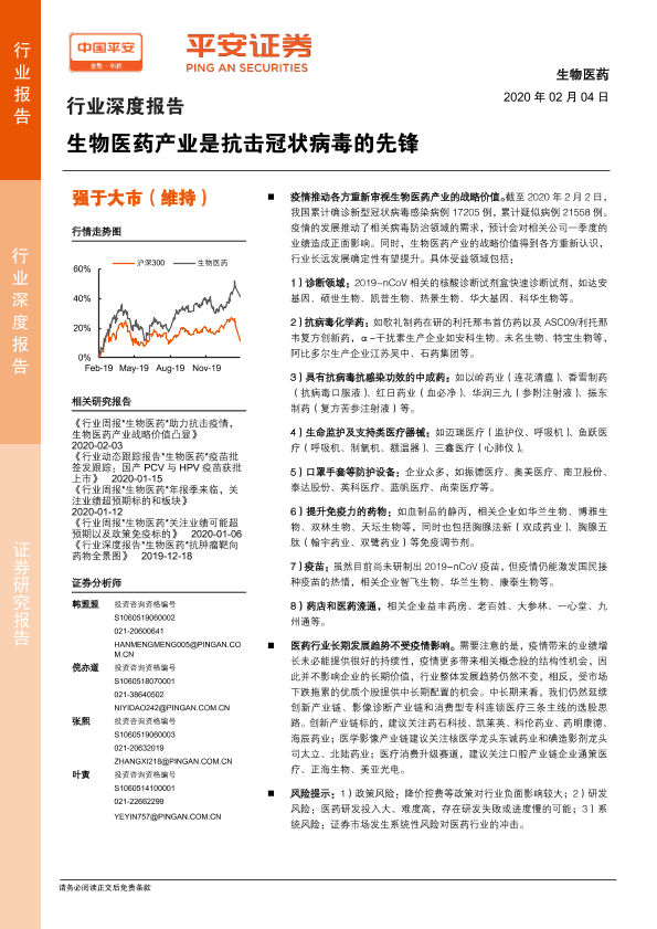 冠状病毒 平安证券 抗疫先锋 生物医药 行业深度报告