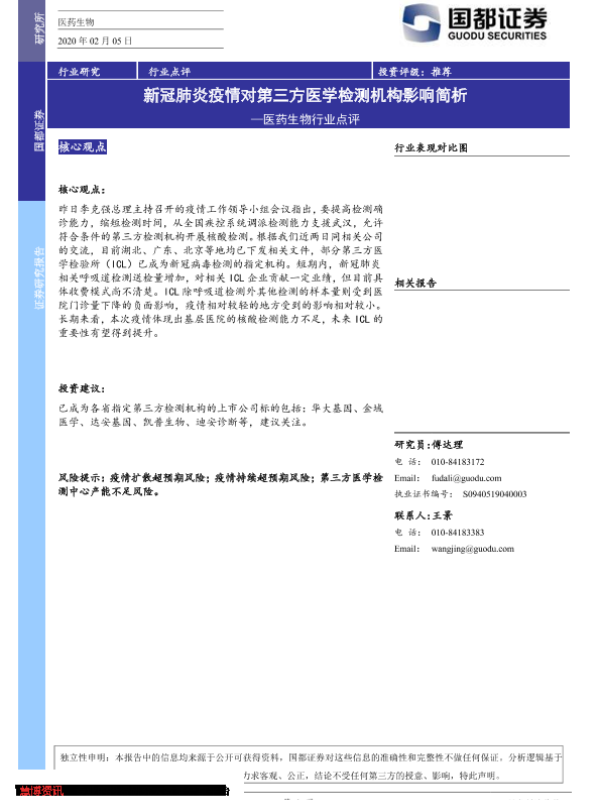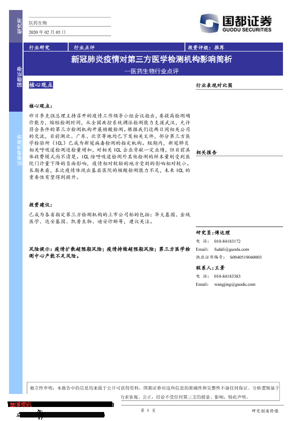 【国都证券】【20200205】新冠肺炎疫情对第三方医学检测机构影响简析-2页