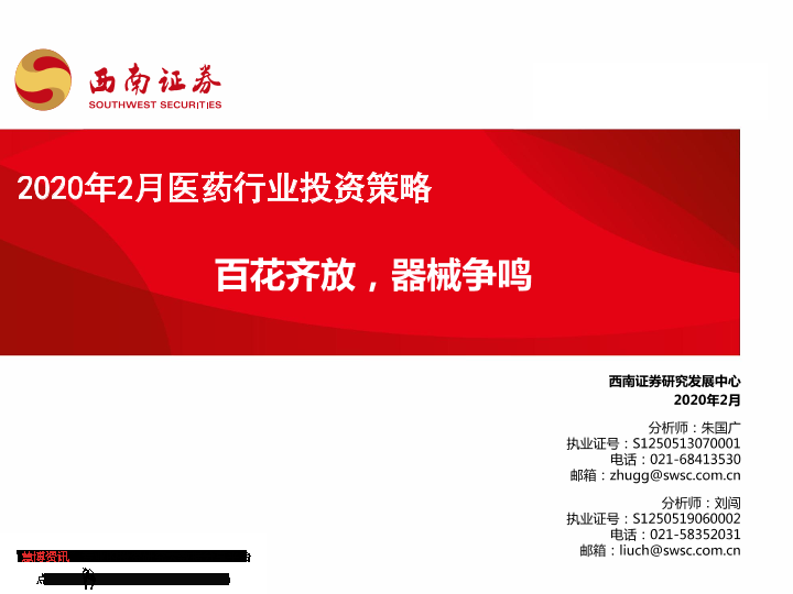 【西南证券】【202002】2020年2月医药行业投资策略:百花齐放,器械争鸣-41页