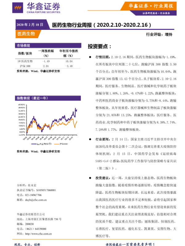 【华鑫证券】【20200218】医药生物行业周报-11页