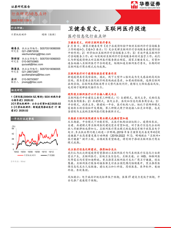 【华泰证券】【20200209】医疗信息化行业点评:卫健委发文,互联网医疗提速-2页