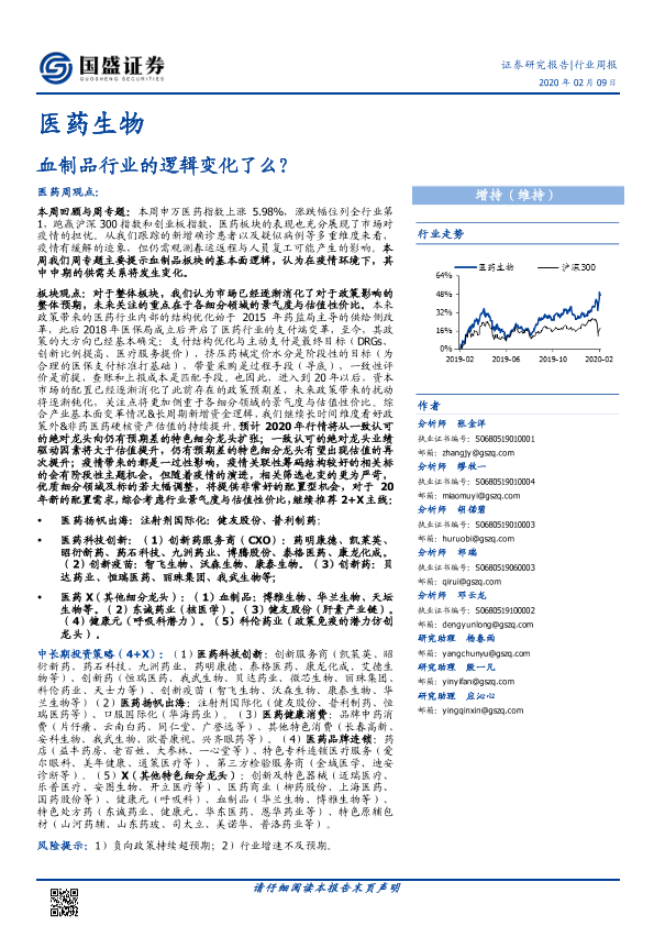 【国盛证券】【20200209】血制品行业的逻辑变化了么?-20页
