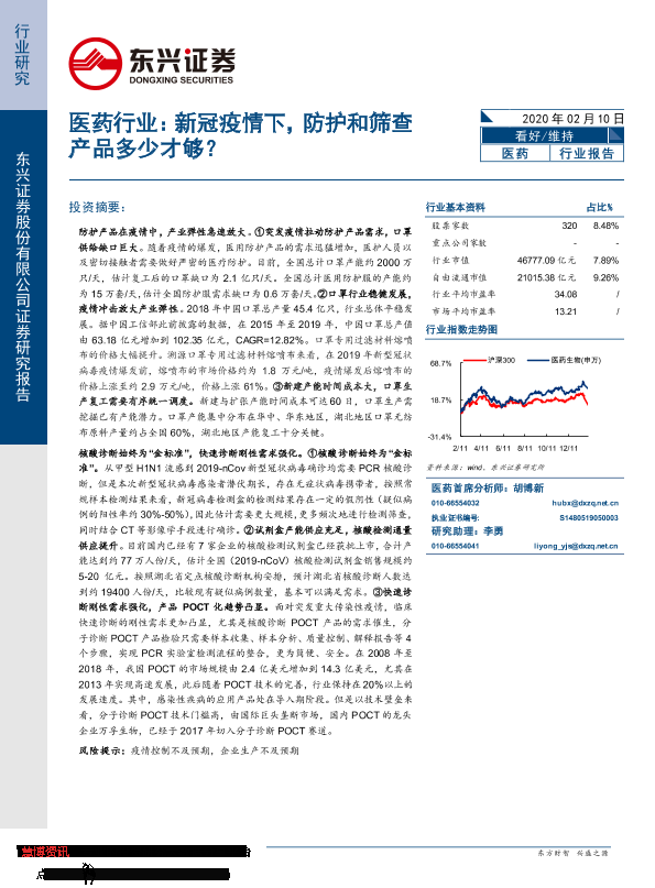 【东兴证券】【20200210】医药行业:新冠疫情下,防护和筛查产品多少才够?-15页