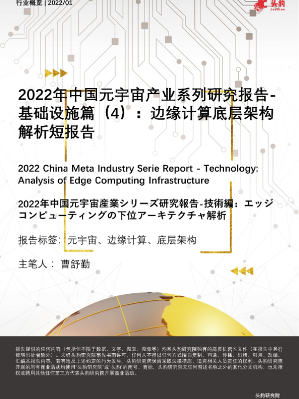 【头豹】【20220101】2022年中国元宇宙产业系列研究报告-基础设施篇(4):边缘计算底层架构解析短报告-30页