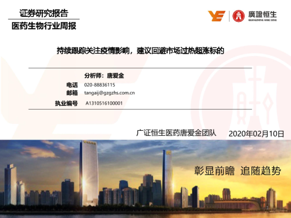 【广证恒生】【20200210】医药生物行业周报:持续跟踪关注疫情影响,建议回避市场过热超涨标的-20页