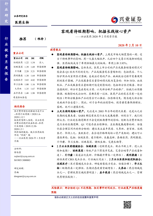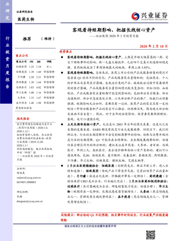【兴业证券】【20200210】客观看待短期影响,把握长线核心资产-28页