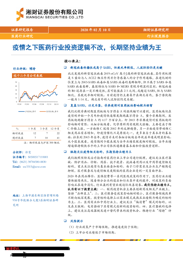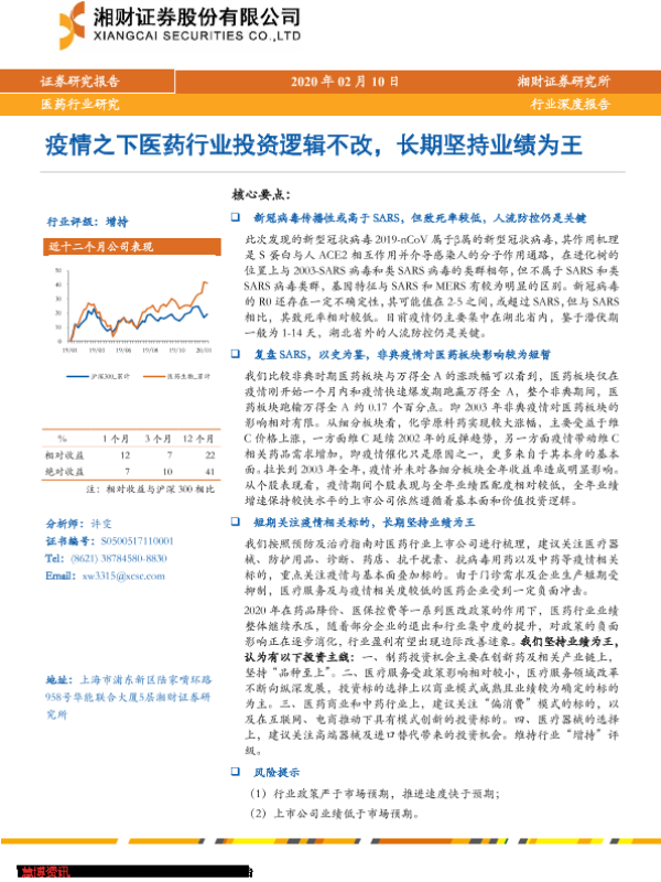 【湘财证券】【20200214】疫情之下医药行业投资逻辑不改,长期坚持业绩为王-14页