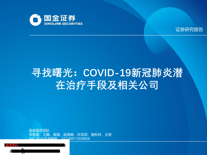 【国金证券】【20200217】寻找曙光:COVID-19新冠肺炎潜在治疗手段及相关公司-31页