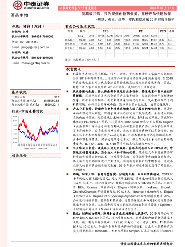 【中泰证券】【20200217】医药生物:辉瑞、强生、诺华、罗氏和默沙东2019财报全解析-25页