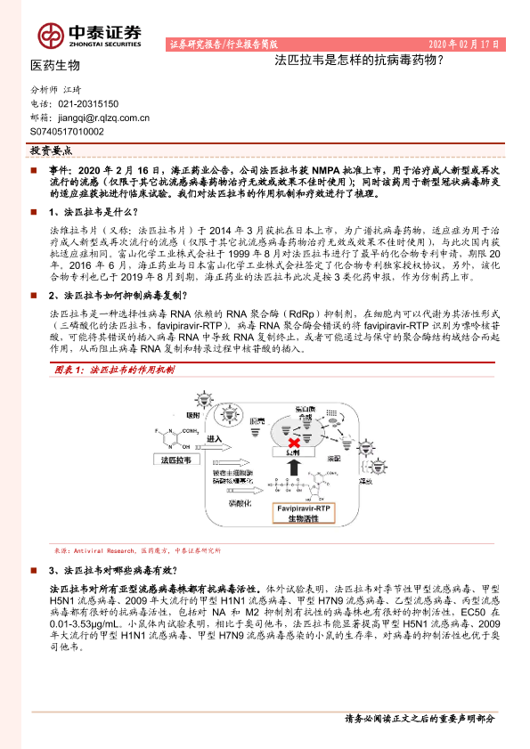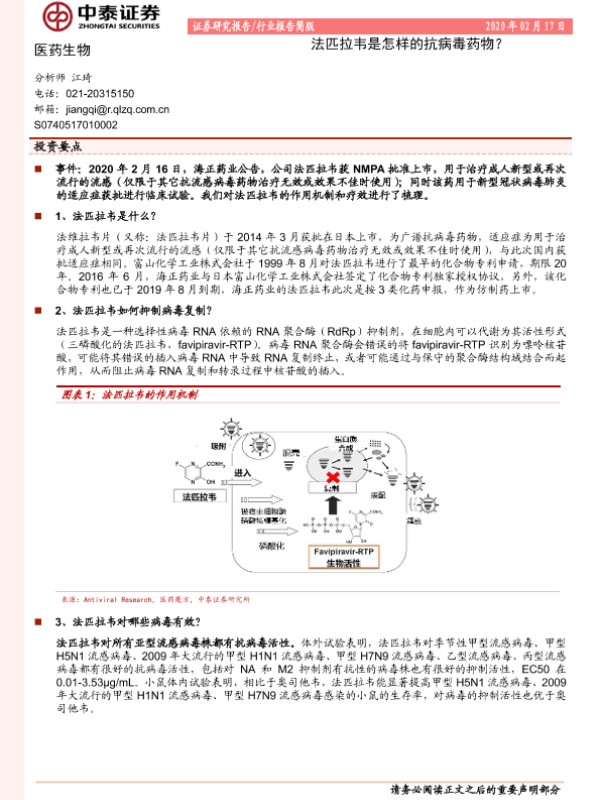 【中泰证券】【20200217】医药生物:法匹拉韦是怎样的抗病毒药物?-4页