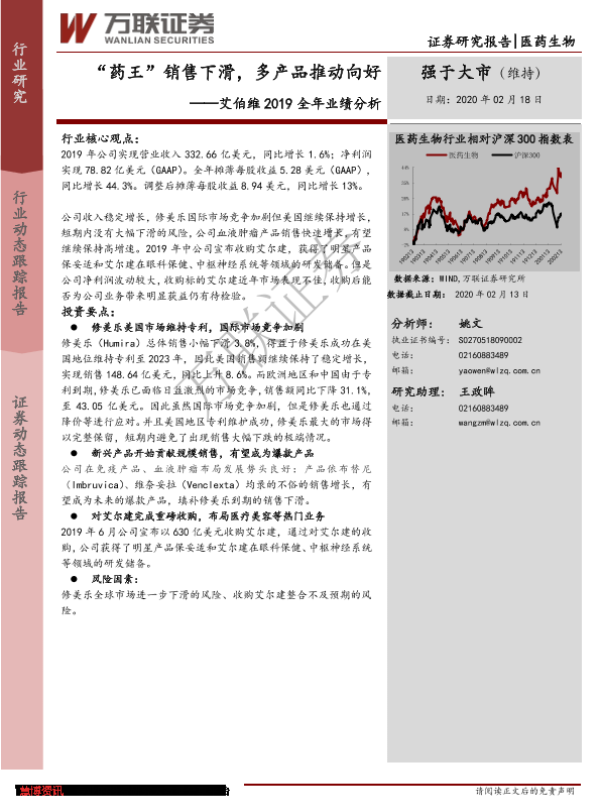 【万联证券】【20200218】艾伯维2019全年业绩分析——“药王”销售下滑,多产品推动向好-6页