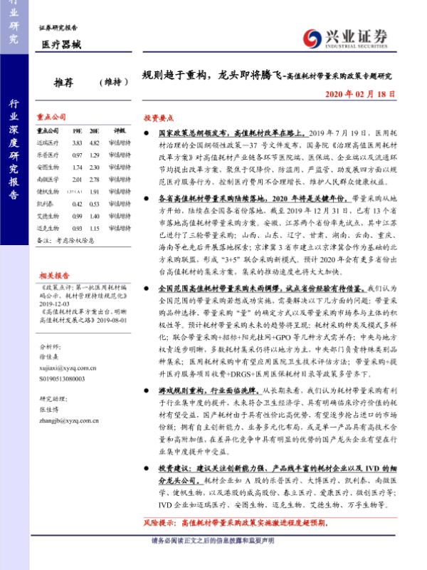 【兴业证券】【20200218】规则趋于重构,龙头即将腾飞-高值耗材带量采购政策专题研究-74页
