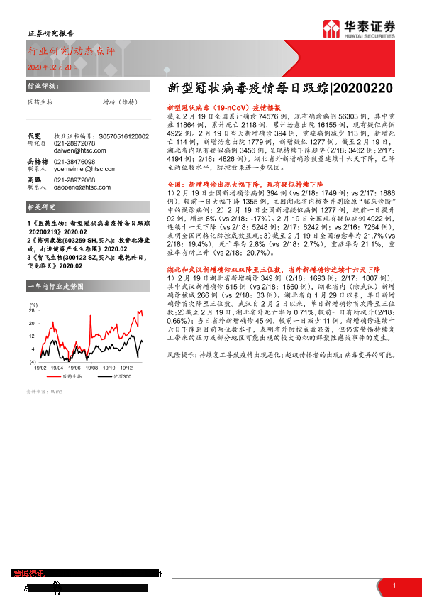 【华泰证券】【20200220】医药生物:新型冠状病毒疫情每日跟踪-4页