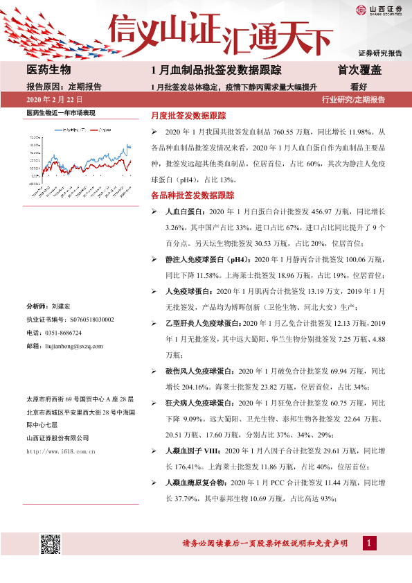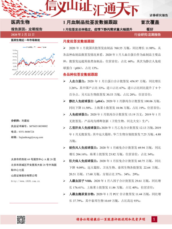 【山西证券】【20200222】1月血制品批签发数据跟踪-32页