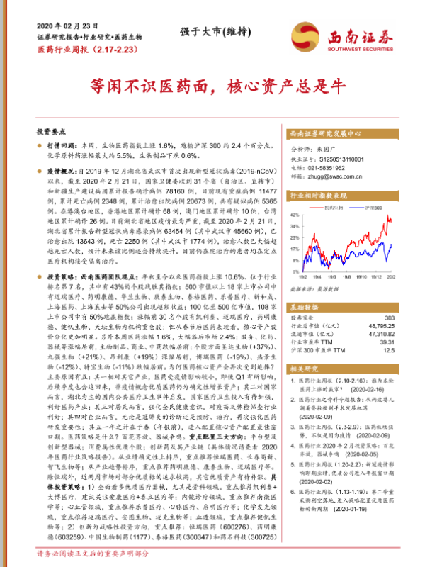【西南证券】【20200223】医药行业周报:等闲不识医药面,核心资产总是牛-18页