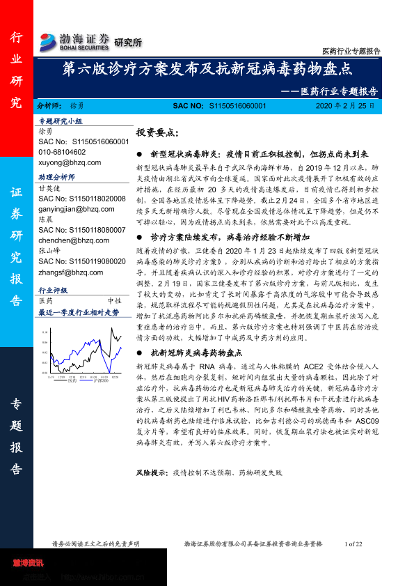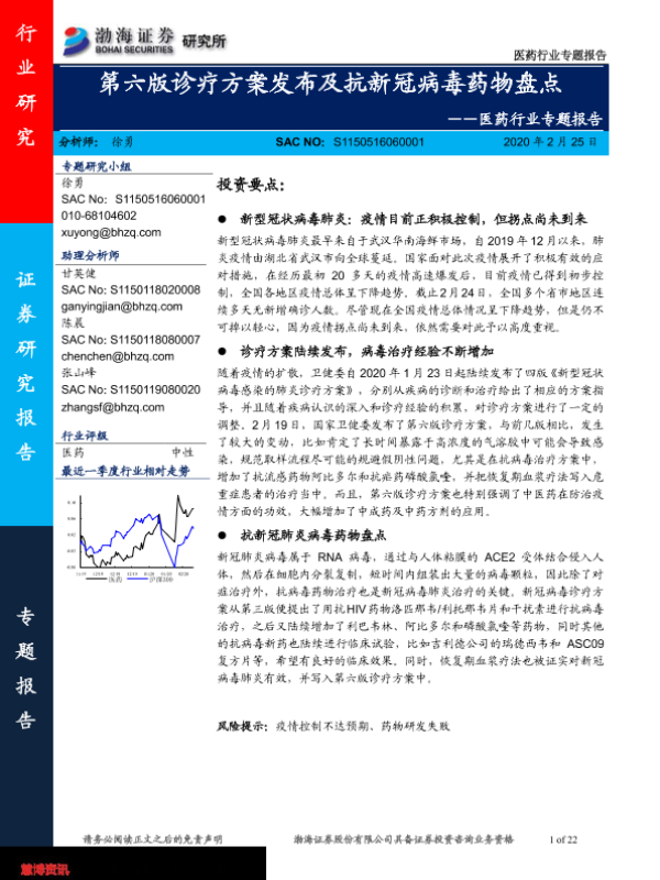 【渤海证券】【20200225】第六版诊疗方案发布及抗新冠病毒药物盘点-22页