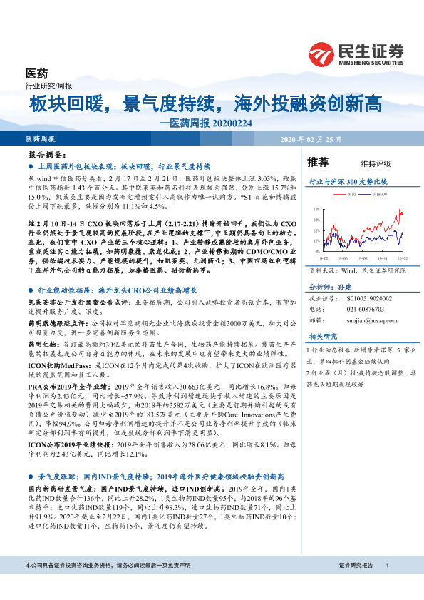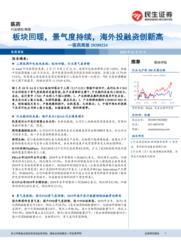 【民生证券】【20200225】医药周报:板块回暖,景气度持续,海外投融资创新高-20页