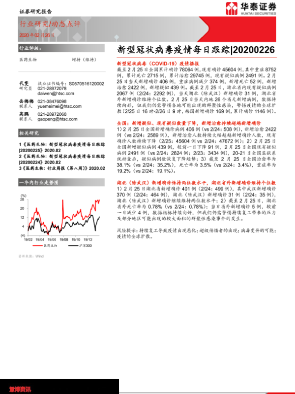 【华泰证券】【20200226】医药生物:新型冠状病毒疫情每日跟踪-4页