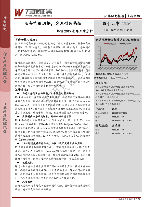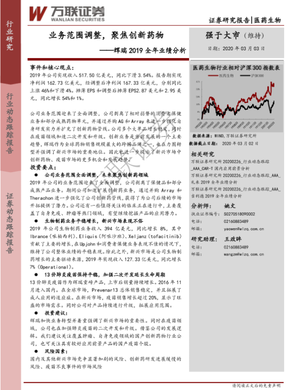 【万联证券】【20200303】辉瑞2019全年业绩分析:业务范围调整,聚焦创新药物-7页