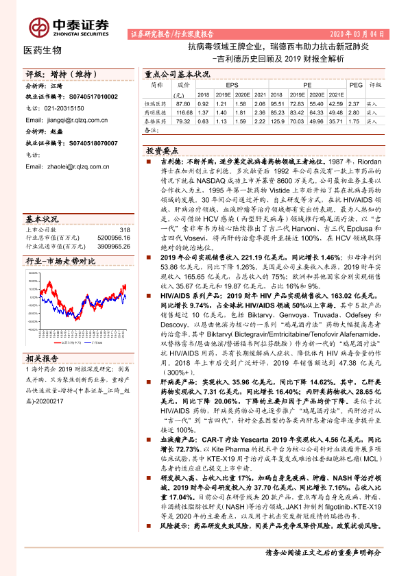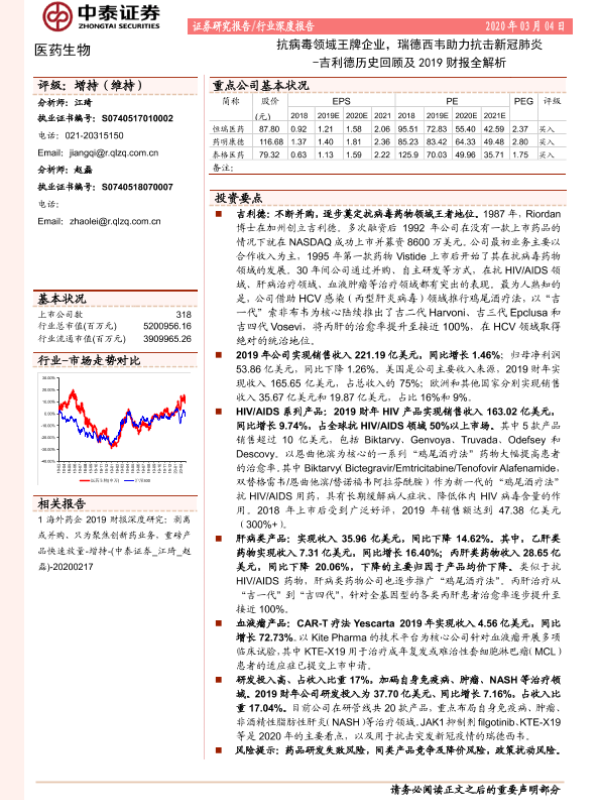 【中泰证券】【20200304】医药生物行业深度报告:吉利德历史回顾及2019财报全解析-17页
