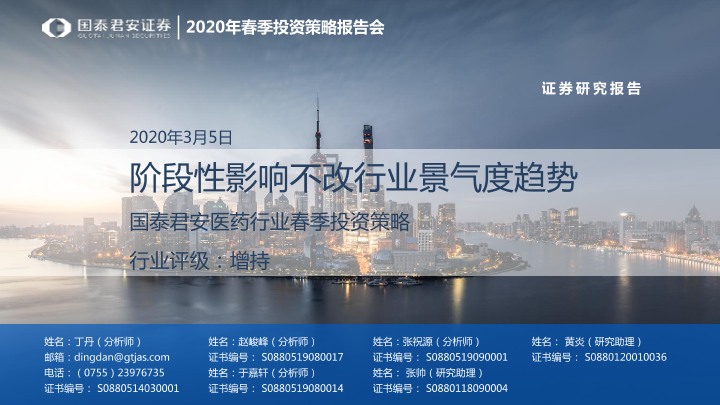 【国泰君安证券】【20200305】医药行业春季投资策略:阶段性影响不改行业景气度趋势-33页