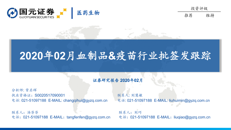 【国元证券】【202003】2020年02月血制品&疫苗行业批签发跟踪-19页