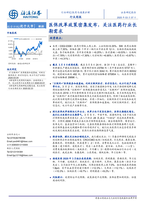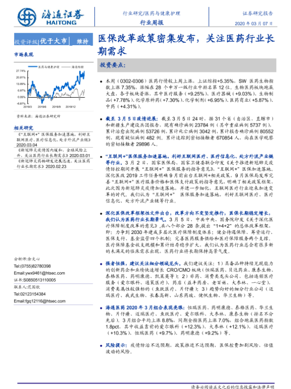 【海通证券】【20200307】医药与健康护理行业周报:医保改革政策密集发布,关注医药行业长期需求-6页