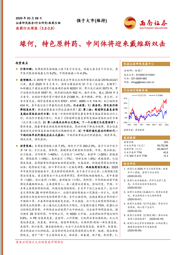 【西南证券】【20200308】医药行业周报:缘何,特色原料药、中间体将迎来戴维斯双击-22页