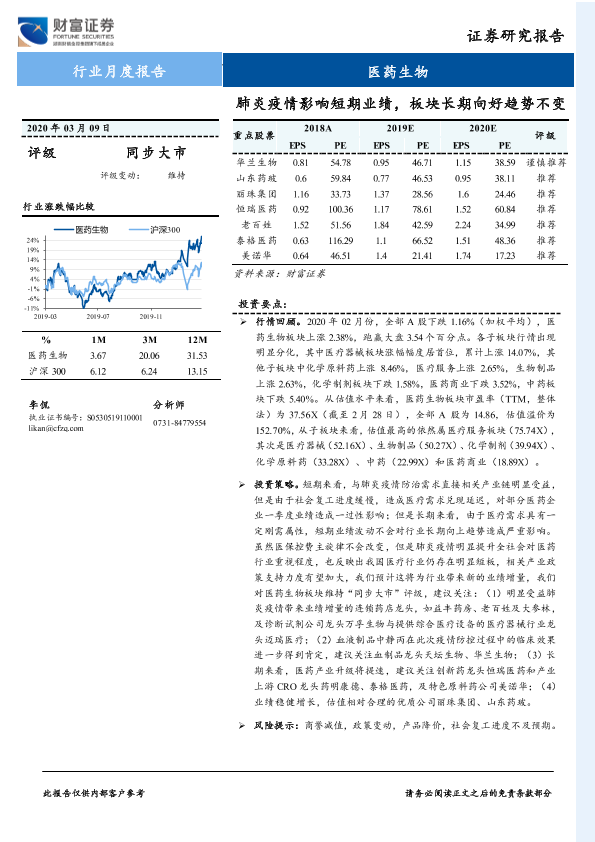 【财信证券】【20200309】医药生物行业月度报告:肺炎疫情影响短期业绩,板块长期向好趋势不变-9页