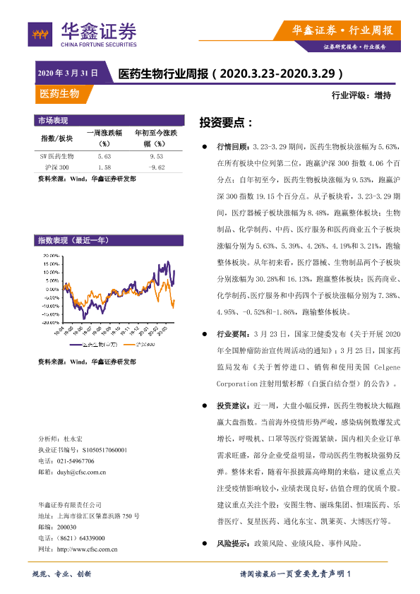【华鑫证券】【20200331】医药生物行业周报-10页