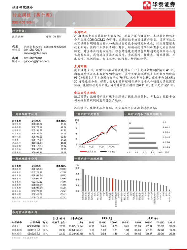 【华泰证券】【20200309】医药生物行业周报(第十周)-7页