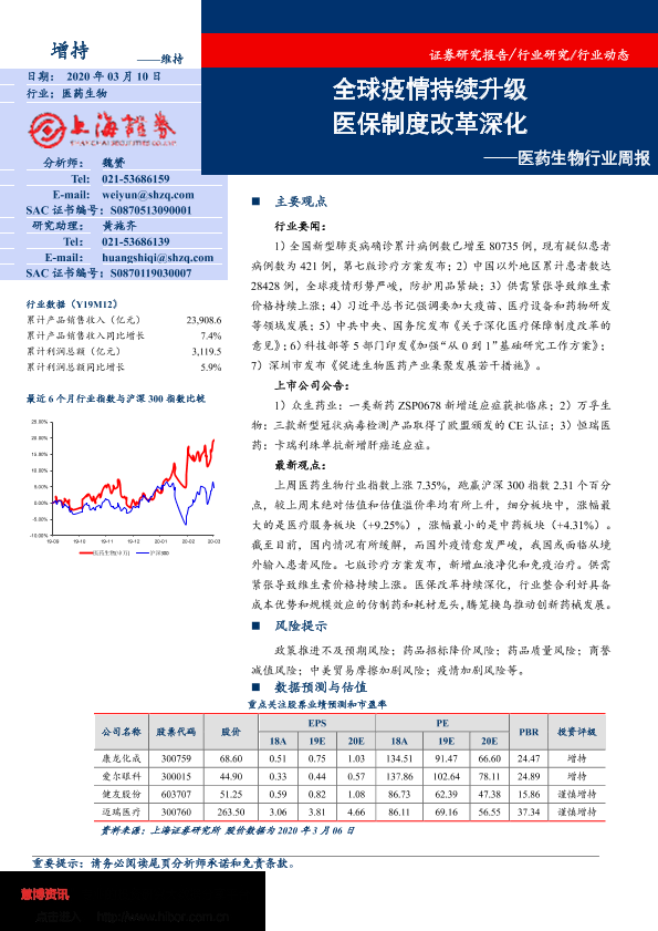 【上海证券】【20200310】医药生物行业周报:全球疫情持续升级 医保制度改革深化-14页