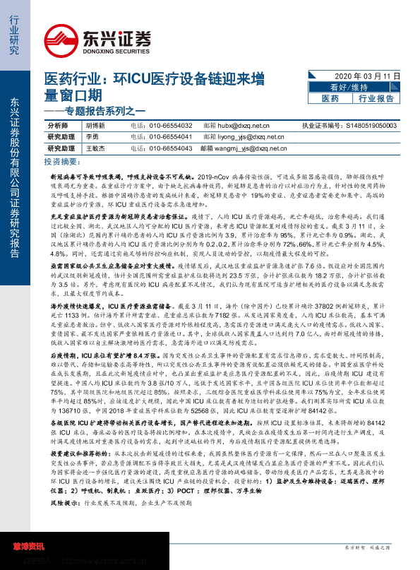 【东兴证券】【20200311】环ICU医疗设备链迎来增量窗口期-21页
