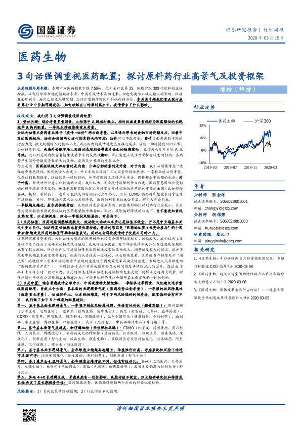【国盛证券】【20200315】医药生物:3句话强调重视医药配置;探讨原料药行业高景气及投资框架-24页