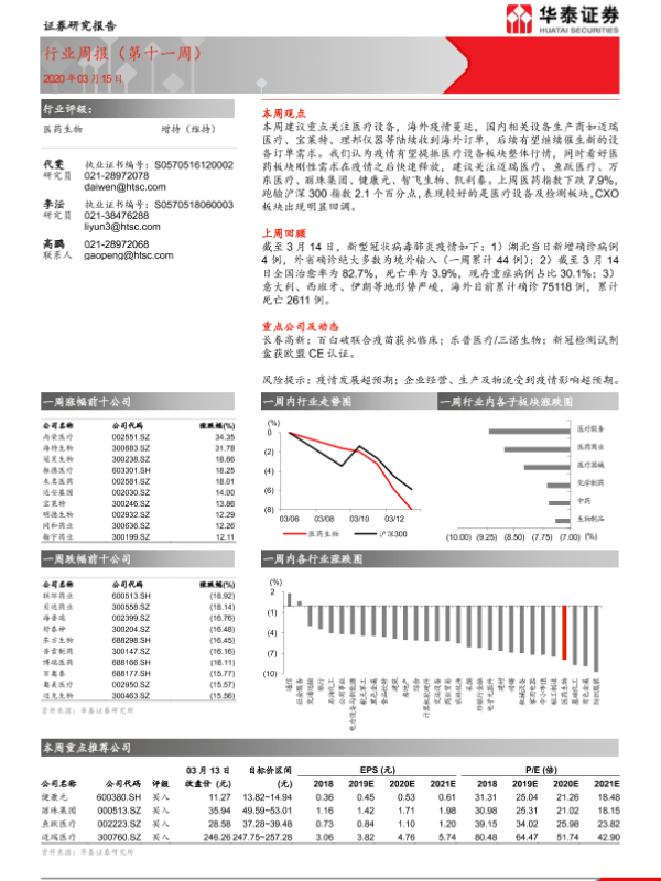【华泰证券】【20200315】医药生物行业周报(第十一周)-8页